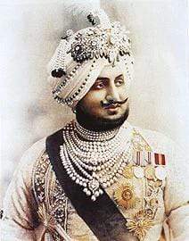 The Patiala Necklace had five rows of platinum chains encrusted with 2930 diamonds (approximately 960 carat) and some Burmese rubies. The necklace was later dismantled and sold. In 1982 at a Sotheby’s auction in Geneva, the “De Beers” diamond reappeared and was sold. In 1998 a Cartier representative stumbled upon the remnants in a small antique shop in London and bought it. All the big diamonds and Burmese rubies were gone.